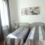 Une chambre avec un lit en 160cm et penderie, une chambre avec 2 lits en 90cm et armoire, une salle de bain et un WC séparé.