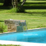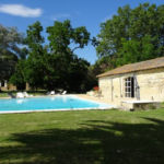 Accès libre à la piscine de 17x13m avec alarme, dans le jardin commun de 6500m², et à la salle de jeux.